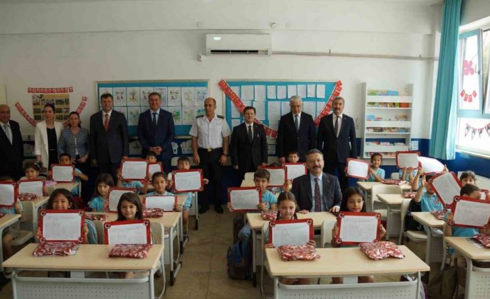 Efeler Aliya İzzet Begoviç İlkokulu’nda gerçekleştirilen törene katılan Aydın Valisi Hüseyin Aksoy’a öğrenciler girişte çiçek sundu. Vali Aksoy ve beraberindeki il protokolü okulda hazırlanan yıl sonu sergini gezip, öğrencilere karnelerini verdi.