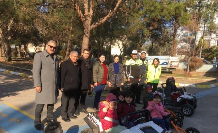 Aydın’da çocuklarda trafik bilincinin oluşturulması amacıyla trafik parkına gelen 20 anasınıfı öğrencisi, uygulamalı trafik eğitimlerinin ardından “trafik dedektifi” oldu.