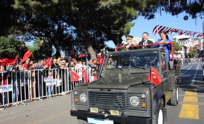 Aydın’da 29 Ekim Cumhuriyet Bayramı ve Cumhuriyet’in ilanının 99. yıl dönümü İstasyon Meydanı’nda düzenlenen törenle kutlandı. Aydın Valiliği’ndeki tebrikat töreninin ardından İstasyon Meydanı’nda Aydın Valisi Hüseyin Aksoy, Aydın Büyükşehir Belediye Başkanı Özlem Çerçioğlu ve Garnizon Komutanı Personel Albay Hakkı Haktan Armağan’ın tören aracı ile halkı ve törene katılanları selamlaması ile başlayan tören, saygı duruşu ve İstiklal Marşı’nın okunması ile devam etti.