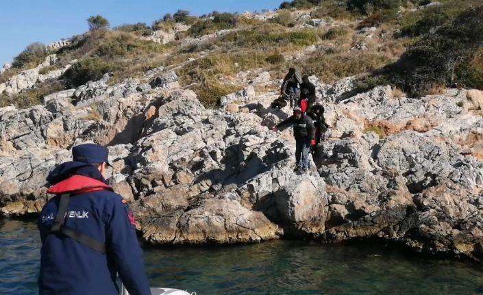Aydın’ın Kuşadası ilçesinde Yunanistan unsurları tarafından Türk karasularına geri itilen ve kendi imkanları ile kayalık bölgeye çıkan 4 düzensiz göçmen kurtarıldı.