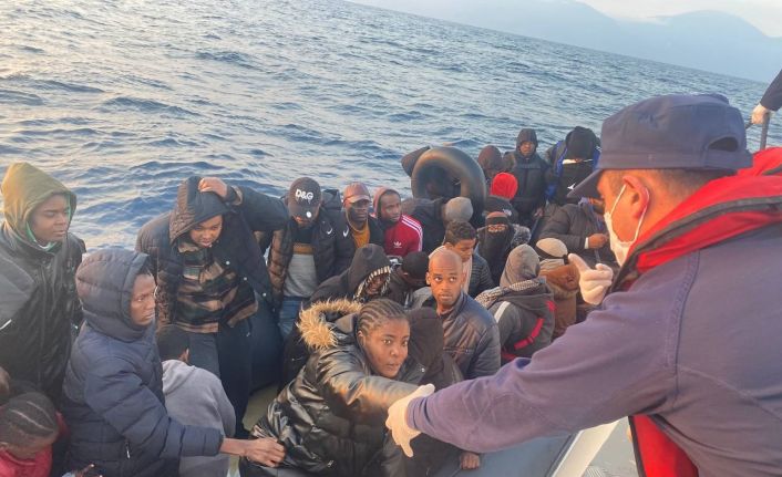 Aydın’ın Kuşadası ilçesinde lastik bot içerisindeki 46 düzensiz göçmen sahil güvenlik ekipleri tarafından kurtarıldı.
