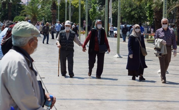 Aydın’ın Efeler ilçesinde 4 saatlik sokağa çıkma izni verilen 65 yaş üstü vatandaşlar, parklara ve meydanlara gelerek 29 dereceyi bulan sıcak ve güneşli havanın keyfini sürdü.