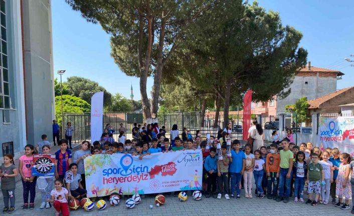 Aydın Gençlik ve Spor İl Müdürlüğü, Aydın Valiliği işbirliği ile çocukların moralini yüksek tutarak eğitim ve öğretimlerinde spor ile bir arada olmalarını sağlamak için başlatılan ’Spor İçin Her Yerdeyiz’ projesi çerçevesinde Aydın’ın 17 ilçesinde belirlenen 17 okula spor malzeme desteği dağıtımı başlatıldı.