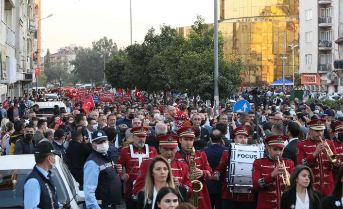 Büyükşehir Belediyesi önünden başlayan, Zafer Meydanı, Gazi Bulvarı, Hükümet Bulvarı, Adnan Menderes Bulvarı ile devam eden yürüyüş Atatürk Kent Meydanı’nda son buldu.