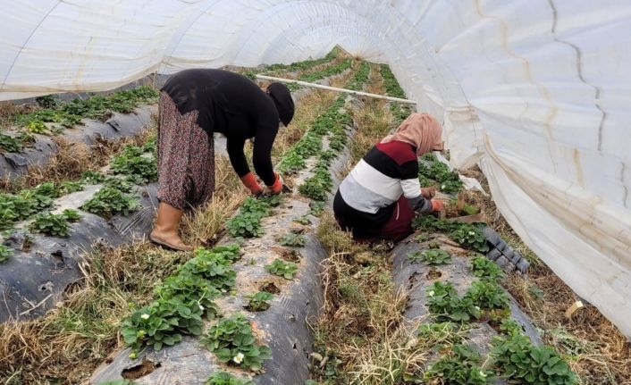 Aydın’da toprakla buluşan çilek fidelerinde erken hasat için gençleştirme çalışmaları yapılırken, çilek üreticisi de yılın yağışlı geçmesi ile birlikte bereketli bir sezon bekliyor.
