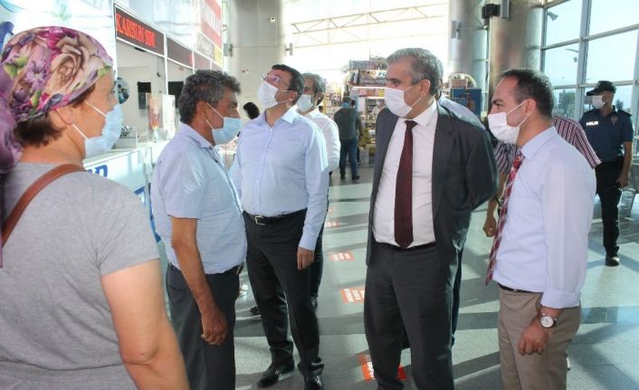 Aydın Büyükşehir Belediyesi Şehirlerarası Otobüs Terminali’nde Vali Yardımcısı Rıza Dalan’ın başkanlığında gerçekleştirilen denetimlere Efeler Kaymakamı Cemal Şahin ve Aydın İl Sağlık Müdürü Dr. Osman Açıkgöz de katıldı.