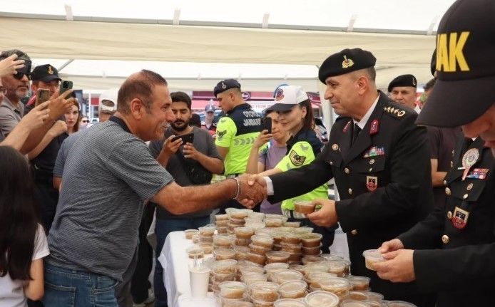 Aydın İl Jandarma Komutanlığı tarafından 186. Kuruluş Yıldönümü kapsamında şehitler için mevlidi şerif okutulurken, limonata hayrı yapıldı.