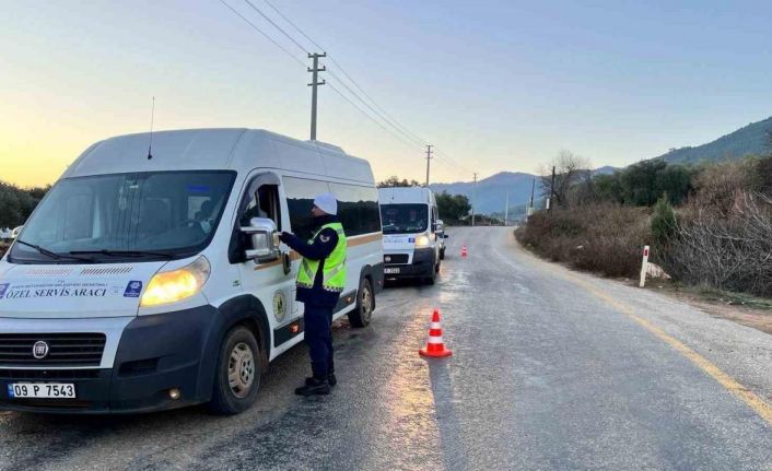 Aydın’da jandarma ekipleri tarafından il genelinde yapılan çalışmalarda okul servisleri denetleniyor.