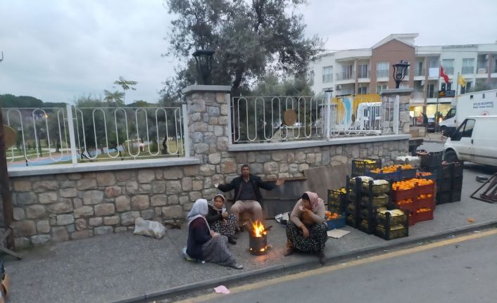 Aydın’da pazarcılar sabah soğuk havadan ateş yakarak korunuyor