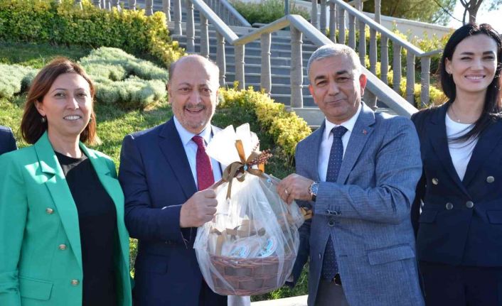 Müze ziyareti sonrası Bakan Bilgin ile bir araya gelen Başkan Kaplan, Bakan Bilgin’e ve AK Parti Genel Başkan Yardımcısı Hamza Dağ’a yoğun çalışmaları dolayısıyla kendilerini dinç tutacak içerisinde sağlıklı ve enerji içeren Koçarlı’da yetişen incir, çam fıstığı, zeytinyağı gibi ürünlerden olan sepet hediye etti.