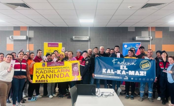 Aydın İl Jandarma Komutanlığı Aile İçi Şiddetle Mücadele ve Çocuk Kısmı ile Söke İlçe Jandarma Komutanlığı personellerince Söke ilçesinde bulunan bir balık fabrikasında çalışan kadın ve erkek vatandaşlara KADES ve Kadına El Kalkamaz, Erken Yaşta ve Zorla Evlilikler konuları kapsamında tanıtım ve bilgilendirme faaliyetinde bulunuldu. Vatandaşların farkındalığını arttırmak ve bilinç kazandırmak amacıyla KADES ve Kadına El Kalkamaz pankartı açılarak yemekhane panosuna afiş asılarak, bilgilendirme broşürü dağıtıldı.