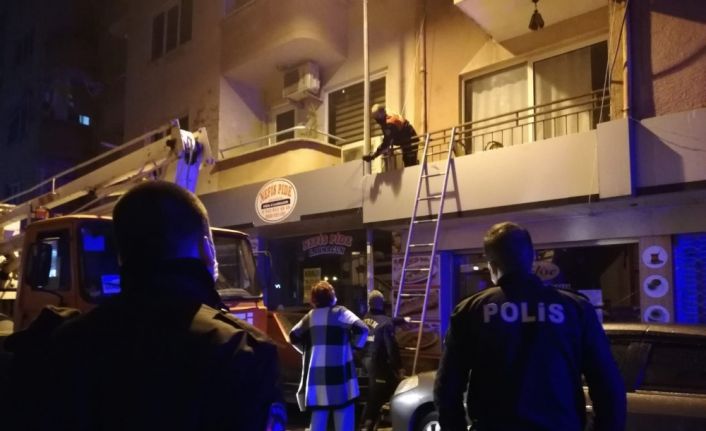 Balkonda mahsur kalan kedinin yardımına itfaiye koştu