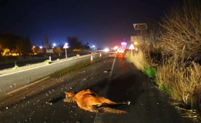 Başıboş atlar yine kazaya neden oldu