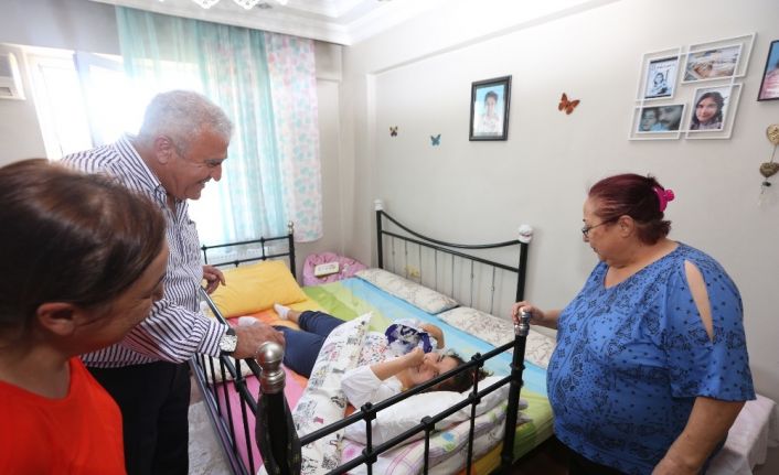 Başkan Atay evlerinde kendisini ağırlayan Ekinci ailesinin kızlarının hastalığıyla yaşadıkları sıkıntıları dinledi, Katre Lale Ekinci ile ilgilendi.