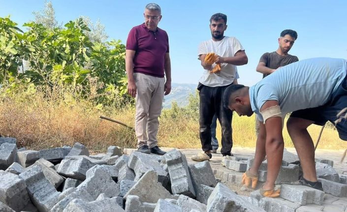 AYDIN (İHA) - KÖŞK BELEDİYE BAŞKANI NURİ GÜLER, YAKLAŞAN İNCİR SEZONU İÇERİSİNDE ÜRETİCİLERİN ARAZİLERİNE DAHA RAHAT ULAŞIM SAĞLAYABİLMELERİ İÇİN TARIM ARAZİSİ YOLLARINA PARKE TAŞI DÖŞEME ÇALIŞMALARI BAŞLATTI.