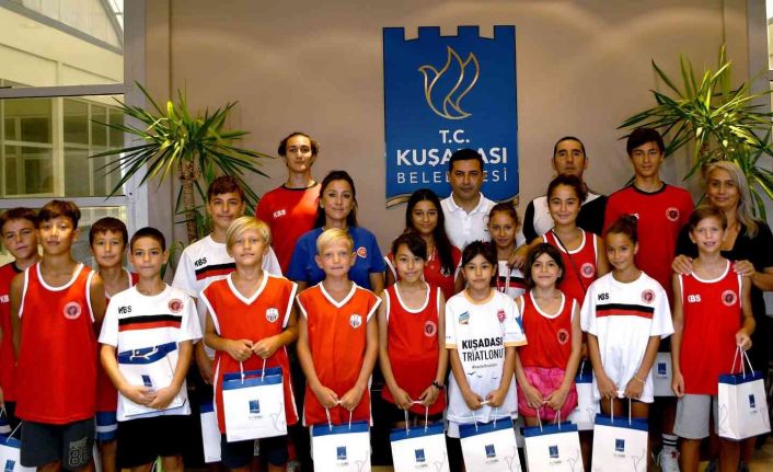 Trafik kazasında yaşamını yitiren milli triatlet Ata Yahşi anısına Kuşadası Sevgi Plajı’nda düzenlenen Bölgesel Triatlon Ligi 2. Bölge 2. Etap yarışında çeşitli dereceler elde eden Kuşadası Belediyespor’un genç triatletleri Başkan Ömer Günel’i makamında ziyaret etti. Sporcuları tebrik eden Başkan Ömer Günel, “Başarılarınızın devamını diliyorum. Kuşadası Belediyesi olarak size destek olmayı her zaman sürdüreceğiz” dedi.