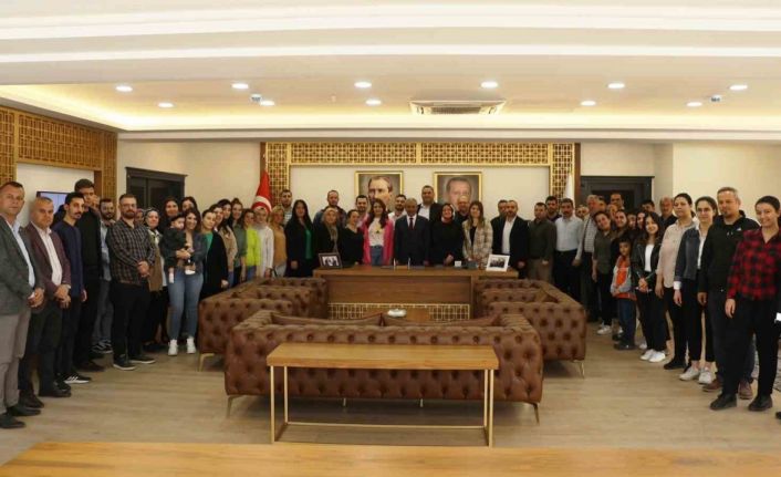 Belediye binasında düzenlenen törene Başkan Kaplan’ın yanı sıra, Başkan yardımcıları, birim müdürleri ve personeller katılırken, bayramlaşma merasimi, Başkan Kaplan’ın personeli ve ile birlikte günün anısına hatıra fotoğrafı çektirmesi ile son buldu.