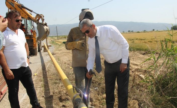 Aydın’ın Koçarlı ilçesinde doğalgaz çalışmaları için ilk kazma vurulurken, Koçarlı Belediye Başkanı Nedim Kaplan çalışmaların Ekim ayında tamamlanmasının planladığını belirtti.
