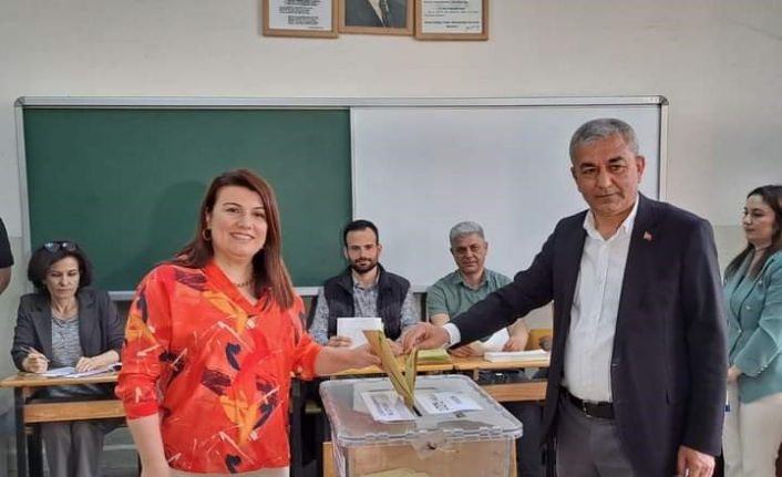 Eşi Nazlı Kaplan ile birlikte oyunu kullanmak üzere Koçarlı Anadolu Lisesine gelen Başkan Kaplan, burada görevlilerden oy pusulası ve mührü alarak 1075 numaralı sandıkta oyunu kullandı.