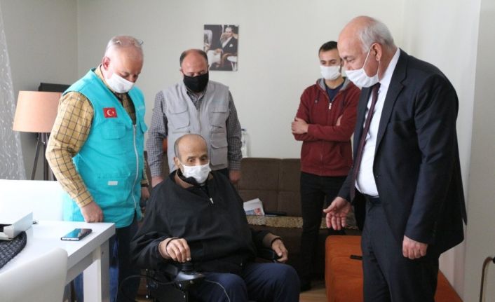 Söke Belediye Başkanı Levent Tuncel, Cemal Bilir’i evinde ziyaret ederek akülü sandalye hediye etti.