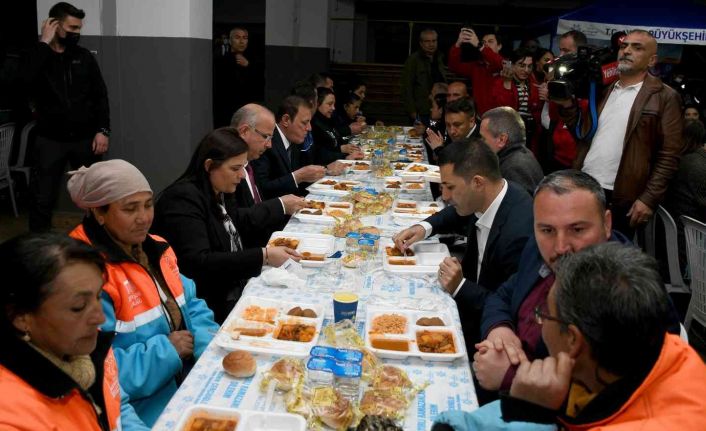 Kuşadası Belediyesi’ne bağlı Personel A.Ş ile Türk-İş’e bağlı Belediye-İş Sendikası arasında imzalanan toplu iş sözleşmesi töreni sonrası, Aydın Büyükşehir Belediye Başkanı Özlem Çerçioğlu ile Kuşadası Belediye Başkanı Ömer Günel, çalışanlarıyla iftar sofrasında buluştu.