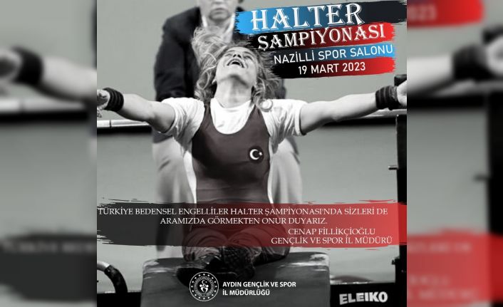 Aydın Gençlik ve Spor İl Müdürlüğü ile Türkiye Halter Federasyonu işbirliğiyle 19 Mart 2023 Pazar gününde Bedensel Engelliler Türkiye Halter Şampiyonası Nazilli Spor Salonu’nda gerçekleştirilecek. Nazilli Kapalı Spor Salonu’nda yapılacak şampiyonada Gençler ve Büyükler Bayanlar ve Erkek olmak üzere sporcular iki kategoride yarışacak. Bayanlar 41, 45, 50, 55, 61, 67, 73, 79, 86, 86+ sıkletlerinde, erkekler ise 49, 54, 59, 65, 72, 80, 88, 97, 107, 107+ sıkletlerinde mücadele edecek.