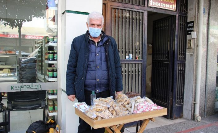 Aydın’da tatlı ustası Mehmet Cem Uğur 30 yıldır el yapımı fıstık ve susam helvaları ile geçimini sağlıyor. Bir metrekare seyyar tezgah üzerinde sattığı tatlılardan elde ettiği kazanç ile 4 çocuk yetiştiren Uğur, "Sağlığım el verdiği sürece işimin başında olmaya devam edeceğim" dedi.