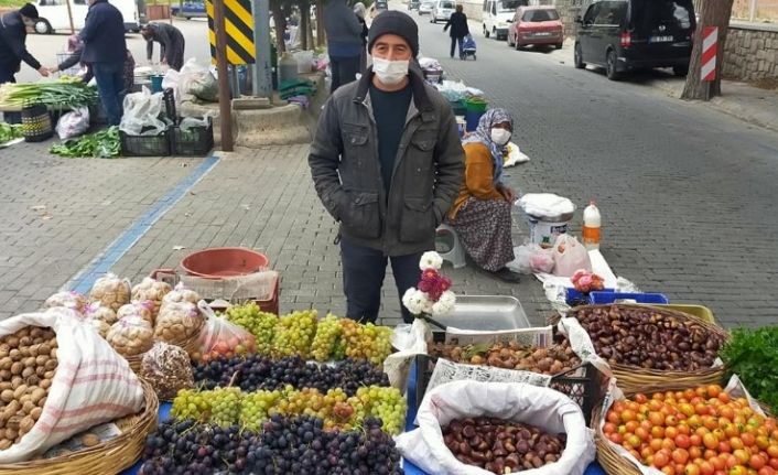 Aydın’ın Efeler ilçesinde kurulan semt pazarında pazarcılık yapan Harun Bakar’ın tezgahındaki ürünlerin hepsi şifa deposu. Kuru incir, kestane, muşmula, ceviz ve maydanoz gibi ürünler satan Bakar, kış aylarının gelmesi ile tezgahındaki ürünlere ilginin arttığını ifade etti.