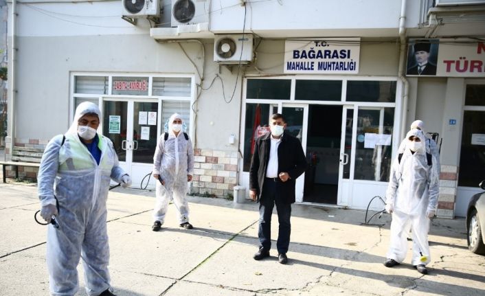 Aydın’ın bütün ilçelerinde gece-gündüz dezenfeksiyon işlemine devam eden ekipler, bugün de Söke’nin Bağarası Mahallesi’nde kapsamlı bir dezenfeksiyon çalışması gerçekleştirdi.