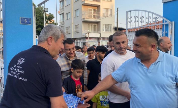 Kurban Bayramı’nın manevi atmosferini paylaşmak isteyen Aydın Büyükşehir Belediyesi, bayram namazının ardından cami çıkışlarında vatandaşlara lokum ikramında bulundu.