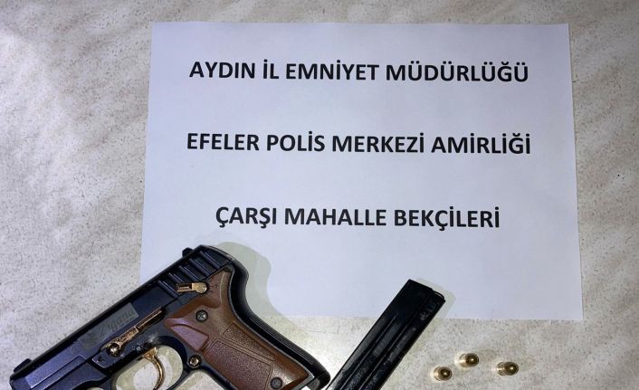 Aydın’ın Efeler ilçesinde aldıkları bir ihbarı değerlendiren Çarşı ve Mahalle Bekçileri şüphelendikleri bir şahsın üzerinden ruhsatsız tabanca ele geçirdi.