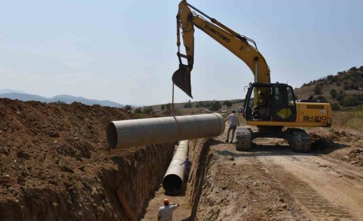 Aydın’ın Çine ilçesinde yapımına başlanan Çine Ovası Sulaması 2. Kısım projesinde çalışmalar aralıksız devam ederken, yer altına indirilen sulama borularının montajı yapılıyor.