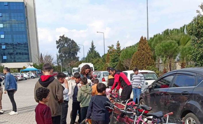Nazilli Bisiklet ve Doğa Sporları Kulübü, ilçe yurdunda kalan depremzede çocuklar için getirdikleri bisikletler ile yüzleri güldürdü.