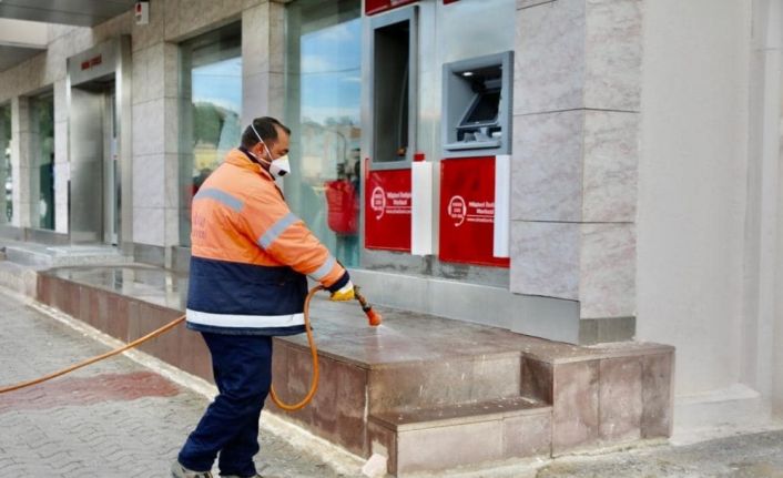 Öte yandan Didim Belediyesi ekipleri kamusal alanlarda da ilaçlama ve dezenfektan çalışmalarını tüm hızıyla sürdürüyor. Temizlik İşleri Müdürlüğü’ne bağlı ekipler, İlçemizin dört bir yanında bulunan otobüs durakları, bankalar, ATM’ler ve diğer kamusal alanlarda dezenfekte çalışmaları gerçekleştirdi.