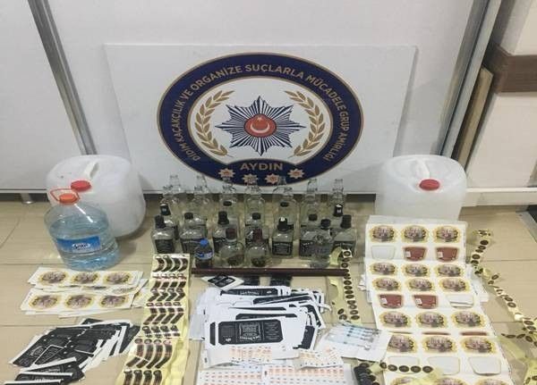 Edinilen bilgiye göre; Didim İlçe Emniyet Müdürlüğü Kom Grup amirliği ekiplerince ilçe merkezinde bir eve baskın yapıldı. Baskında yapılan aramada 2.63 gr uyuşturucu madde, 20 Litrelik bidonlar içerisinde alkollü içkiler ile birlikte 330 adet TAPDK ya ait sahte bandrol, 32 adet boş alkol şişesi, sahte içki üretiminde kullanılan bir çok etiket ve şişe kapakları ele geçirildi. Olayla ilgili olarak S. A adlı şüpheli göz altına alındı. Emniyetteki ifadesinin ardından Adliyeye sevk edilen şüpheli tutuklanarak ceza evine gönderildi.