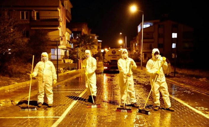 Korona virüs vakalarının hızla artış göstermesinin ardından Didim Belediyesi ekipleri, kent genelinde dezenfekte çalışmalarını gece-gündüz gerçekleştiriyor.