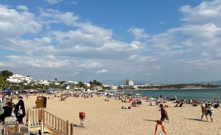 Aydının turistik ilçesi Didim’de Ekim ayının ortasında güneşli havayı fırsat bilenler Altınkum Plajı’nda güneşin ve güzel havanın tadını çıkardı.