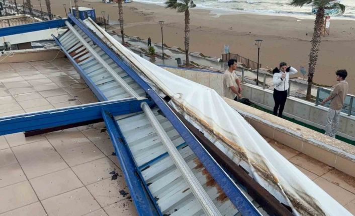 Aydın’ın Didim ilçesinde etkili olan fırtına hayatı olumsuz etkilerken, bazı iş yerlerinin çatıları zarar gördü.