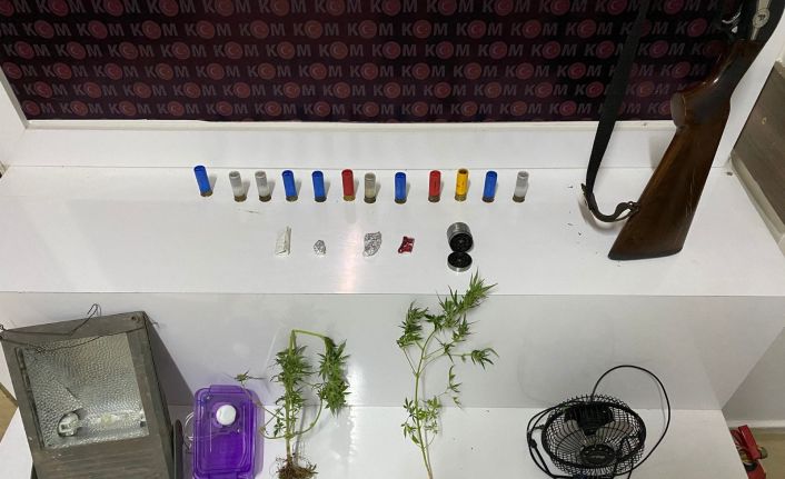 Edinilen bilgiye göre, Narkotik Daire Başkanlığı koordinesinde illegal kenevir ekimi suçu ile ilgili olarak ülke genelinde yapılan eş zamanlı operasyon kapsamında; Didim İlçe Emniyet Müdürlüğü KOM Grup Amirliği ekiplerince ilçedeki 3 ayrı eve operasyon gerçekleştirildi. Ekipler S.E. adlı şahsın ikametinde yaptıkları aramada; “2 fişek halinde daralı 3.99 gram metamfetamin, 1 fişek halinde daralı 0.68 gram sentetik kannobinoid maddesi, 1 fişek halinde daralı 1.71 gram esrar maddesi, 1 adet esrar öğütme aparatı, 2 kök 30-40 cm boyutlarında hint keneviri bitkileri, Hint keneviri yetiştirmede kullanılan elektrik ve havalandırma ekipmanları, 1 adet otomatik av tüfeği ve 12 adet tüfek kartuşu yakaladı.