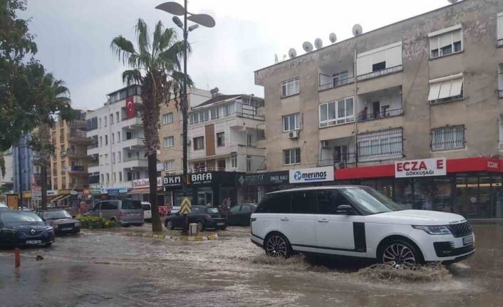Aydın’ın Didim ilçesinde sabah saatlerinde etkili olan sağanak yağış ile birlikte yollar göle döndü, sürücüler zor anlar yaşadı.