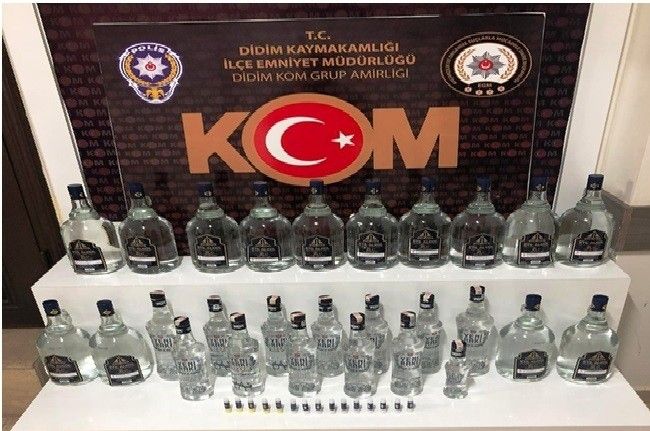 Edinilen bilgiye göre, Aydın İl Emniyet Müdürlüğü, Didim İlçe Emniyet Müdürlüğü Kom Grup Amirliği ekiplerince uyuşturucu madde kullanımı ve ticaretine yönelik çalışma başlatıldı. Yapılan çalışmalar kapsamında, ilçede faaliyet gösteren bir işyerinde ve işyeri sahibinin ikametinde yapılan aramalarda şişelenmiş 2 adet 100 cl, 10 adet 70 cl, 1 adet 20 cl el yapımı içki, 14 adet 2 litrelik cam şişelerde toplam 28 litre tıbbi kullanım amaçlı etil alkol, 15 adet alkol yapımında kullanılan aroma kiti ele geçirildi. Ayrıca yine ilçede faaliyet gösteren bir işyerinde yapılan aramada ise 13 adet gümrük kaçağı/imei değiştirilmiş cep telefonu ele geçirildi. İşyeri sahipleri E.Ç. ve Y.Y. isimli şahıslar hakkında işlem başlatıldı.