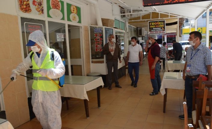 Korona virüs süreci sonrasında normalleşme paketi çerçevesinde 1 Haziran 2020 itibariyle restoran, kafe, pastane, kıraathane, çay bahçeleri, dernek lokali, yüzme havuzu, kaplıca türü işletmeler belirlenen kurallar dahilinde saat 22.00’ye kadar hizmet vermeye başlayacağının açıklanmasının ardından Didim’deki bu tür işletmelere dezenfekte çalışması yapıldı.
