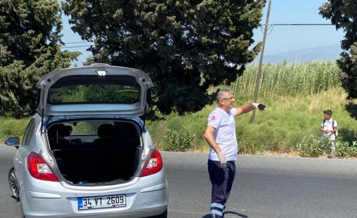 Aydın’ın Söke ilçesinde meydana gelen trafik kazasında güvenlik güçleri olay yerine ulaşmakta gecikince ikinci bir kazanın yaşanmaması için yoldaki trafiği kısa süreliğine ambulans şoförü düzenledi.