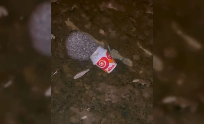 Dondurma kutusuna kafası sıkışan kirpiyi itfaiye kurtardı