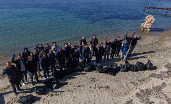 Aydın’ın Kuşadası ilçesinde bir araya gelen gönüllüler, Dünya Su Günü’nde çevre bilincine dikkat çekerek kıyı temizliği yaptı.