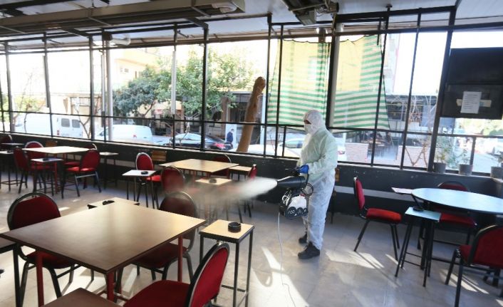 Efeler Belediyesi Sağlık İşleri Müdürlüğü ekipleri, Başkan Atay’ın talimatıyla, kontrollü normalleşme kararının ardından açılan Efeler’deki kafe, restoran ve kahvehanelere yönelik dezenfeksiyon çalışmalarına hız verdi. Korona virüse karşı ilçede 10 binden fazla binayı ilaçlayarak, salgına karşı olağanüstü gayret gösteren Sağlık İşleri Müdürlüğü ekipleri; ilçedeki kafe, restoran ve kahvehanelerde yoğun mesai harcıyor. Sabahın ilk saatlerinden itibaren harekete geçen Sağlık İşleri Müdürlüğü çalışanları, kapılarını yeniden vatandaşların hizmetine açan işletmelerde, esnaf ve vatandaşları da tedbirli olmaları konusunda uyarıyor.Efeler Belediyesi, işletmelerde önlem alıyor
