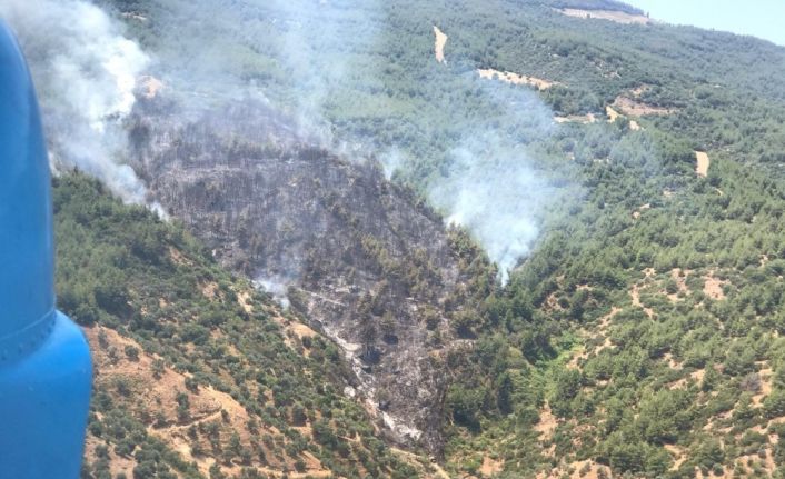 Aydın’ın Efeler ilçesindeki ormanlık alanda çıkan yangını söndürme çalışmaları devam ediyor.