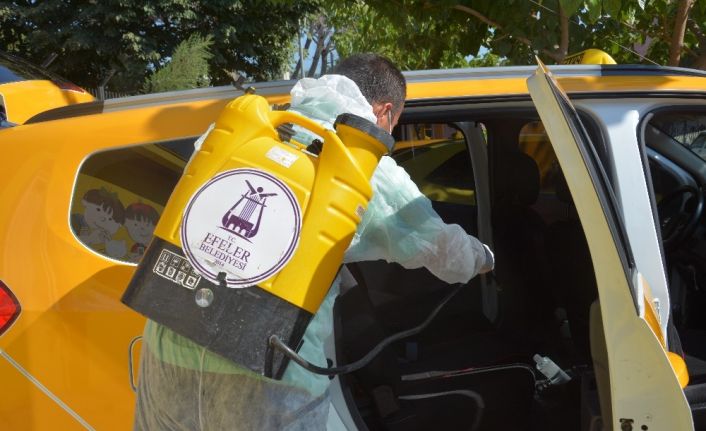Efeler Belediyesi Sağlık İşleri Müdürlüğü ekipleri, Efeler Belediye Başkanı M. Fatih Atay’ın talimatı ile ilçedeki tüm taksileri ve taksi duraklarını dezenfekte etti.