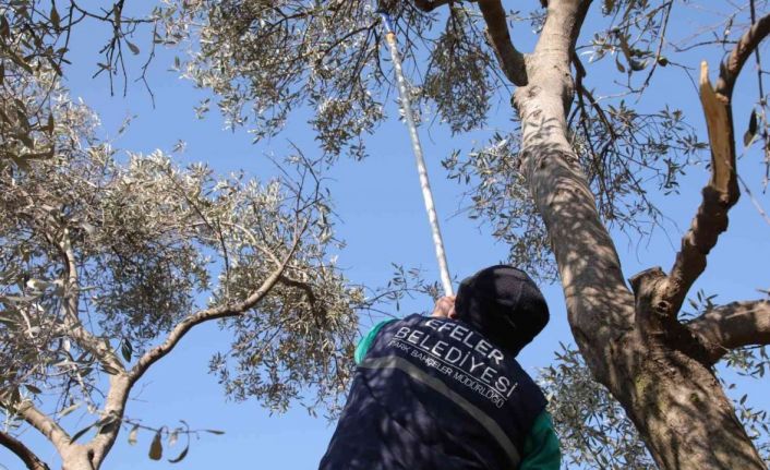 Efeler Belediyesi ilçedeki park, bahçe, yeşil alanlar ile belediye tarlalarında gerçekleştirdiği zeytin hasadını tamamlayarak, zeytin ağaçlarının bakımına başladı.