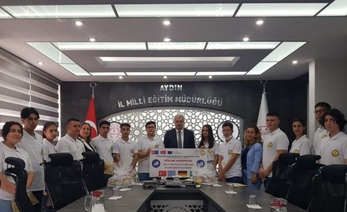 Aydın’ın Efeler ilçesi Kadıköy Abdülhamid Han Mesleki ve Teknik Anadolu Lisesi öğrencileri ’Erasmus+’ Programı çerçevesinde Ulusal Ajans tarafından hibe edilen projeleri ile staj yapacakları Yunanistan’a gitmeden önce İl Milli Eğitim Müdürü Seyfullah Okumuş’u ziyaret etti.